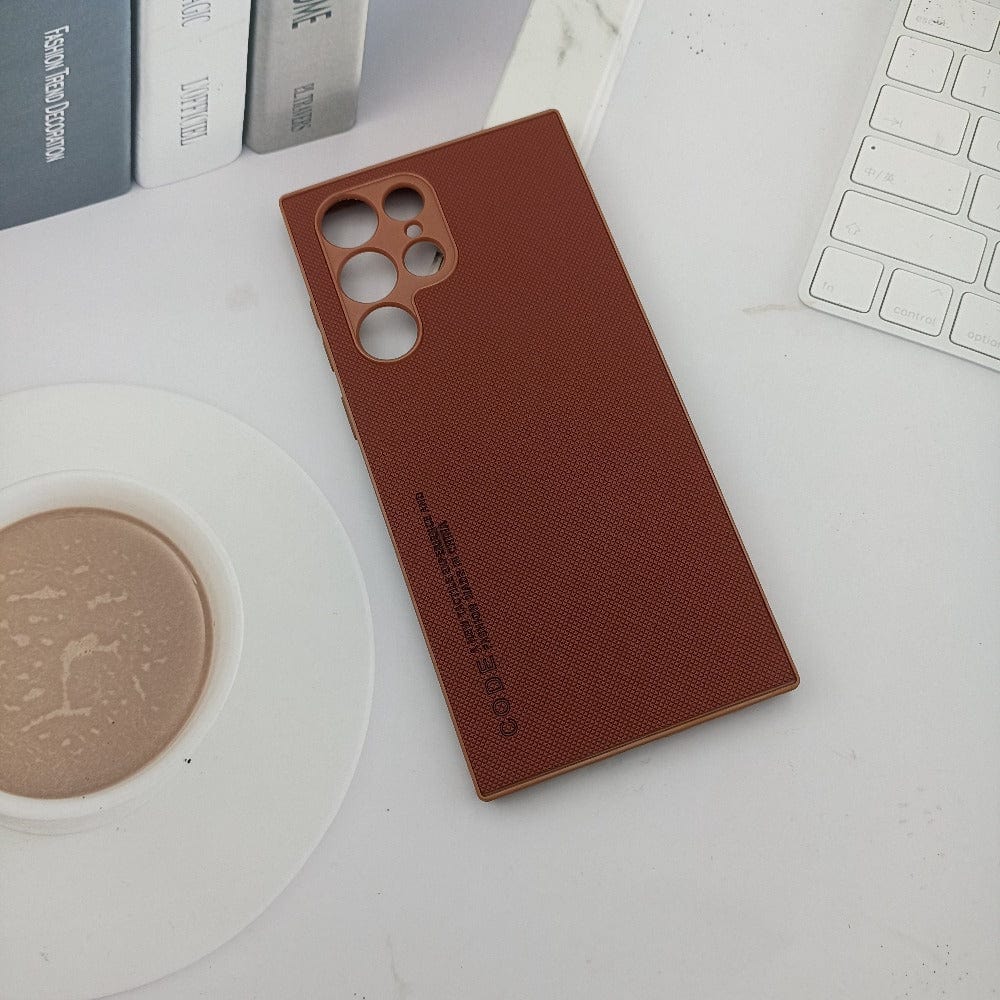 The Samsung S22 Ultra mobile cover is crafted to offer stylish yet protective coverage for your device. Its back cover provides a snug fit and convenient access to all ports and buttons. This phone case is uniquely designed for the Samsung Galaxy S22 Ultra, enhancing your phone's appearance with our CODE Logo printed cover. Crafted from high-quality materials, this phone case not only safeguards your device against scratches and dust but also adds a stylish touch with its sleek CODE Logo design.