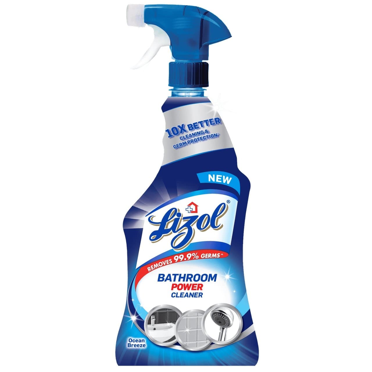 Clean bathroom surfaces to a brilliant shine with Lizol Bathroom Power Cleaner. The powerful action tackles even the toughest cleaning challenges -- removing soap scum, lime scale, and everyday dirt and grime -- with little or no scrubbing. It leaves behind a clean, fresh scent. Lizol Bathroom Power Cleaner can be used on a variety of household surfaces, including shower doors, tubs, glazed ceramic tiles, vanity tops, sinks, etc.