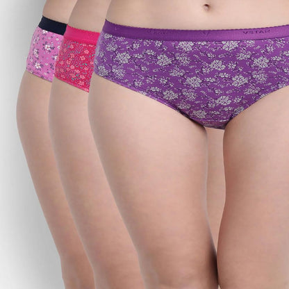 Vstar Printed Hipster Cut with Contrast Waistband Panties for Women (Pack of 3)