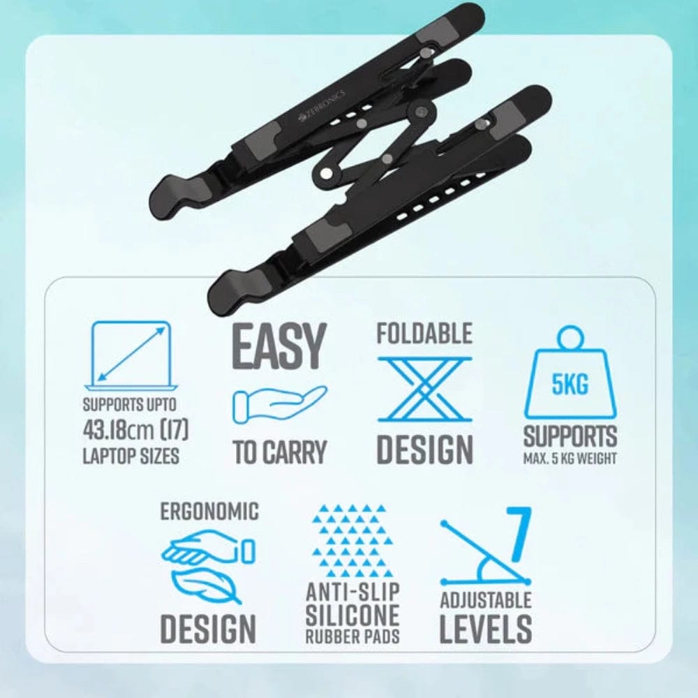 The ZEB-NS1500 is a laptop stand that comes in an ergonomic design that helps you maintain a good posture during long hours with features like 7 adjustable levels making it more convenient to work for hours without any strain. The laptop stand is made with sturdy ABS material.
