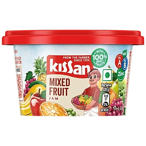 கிஸ்ஸான் மிக்ஸ் ஃப்ரூட் ஜாம் என்பது ஒரு சுவையான, பழ வகையாகும், இது உங்கள் காலை உணவு மற்றும் சிற்றுண்டி தேவைகளுக்கு ஏற்றது. உண்மையான பழங்களின் கலவையுடன் தயாரிக்கப்படுகிறது, இதில் எந்தவிதமான பாதுகாப்புகள் அல்லது செயற்கை வண்ணங்கள் இல்லை, ஒவ்வொரு முறையும் நீங்கள் ஆரோக்கியமான மற்றும் சுவையான அனுபவத்தைப் பெறுவதை உறுதி செய்கிறது. இனிப்பு மற்றும் கறுப்புத்தன்மையின் சரியான சமநிலையுடன், இந்த ஜாம் எந்தவொரு சரக்கறைக்கும் கண்டிப்பாக இருக்க வேண்டும்.